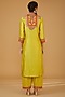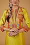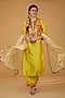 Featuring a mustard kurta in chanderi silk base with patchwork. It is paired with salwar pants and a crushed tissue dupatta. Accentuate this designer kurta set with dangler earrings and block heels for festive occasions or haldi ceremonies.