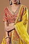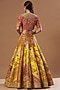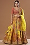 Featuring a mustard lehenga in raw silk, chanderi and mulmul base. It is paired with a blouse and a dupatta. Accentuate this designer set with statement jewellery and heels for a complete look, ideal for wedding, engagement or haldi ceremony.