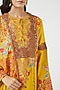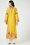 Featuring a mustard scalloped kurta in chanderi, silk, and mulmul base. It is paired with contrasting pants and a dupatta.