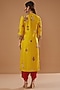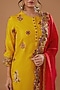 Featuring a mustard kurta in silk base with gajra border. It is paired with pleated salwar pants and a dupatta. Perfect wear for haldi ceremony.