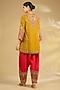 Featuring a mustard kurta in silk base with hand and machine embroidery. It is paired with salwar pants and an embroidered dupatta. Accentuate it with statement jewellery and heels for festive occasion.