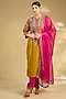 Featuring a mustard kurta in silk base with hand and machine embroidery. It is paired with salwar pants and an embroidered dupatta. Accentuate it with statement jewellery and heels for festive occasion.