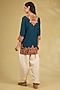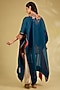 Featuring a navy blue cape kurta in silk base with hand and machine embroidery. It is paired with pleated salwar pants. Style it with a clutch and heels for festive nights, sangeet or wedding functions.