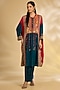 Featuring a navy blue kaftan in silk base with hand and machine embroidery. It is paired with pants. Accentuate it with statement jewellery and heels for a festive occasion, cultural event or intimate pooja ceremony.