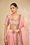 Featuring a pink lehenga in chanderi and organza base with hand and machine embroidery. It is paired with an embroidered blouse and a dupatta. Accentuate it with polki jewellery, a potli bag and block heels for a wedding or engagement ceremony.