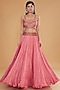 Pink Chanderi Silk Embroidered Crushed Jacket Lehenga Set