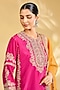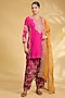 Featuring a pink kurta in silk base with hand and machine embroidery. It is paired with salwar pants and a dupatta. Accentuate it with traditional jhumkas and embellished heels for a timeless festive look, perfect for weddings, family functions or celebratory events.