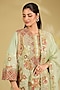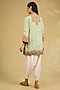 Featuring a pista green short kurta in silk base with hand and machine embroidery. It is paired with pleated salwar pants and a dupatta. Style it with a clutch and heels for festive nights, sangeet or wedding functions.