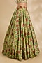 Pista Green Silk & Organza Floral Printed Lehenga Set