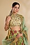 Featuring a pista green lehenga in silk and organza base with floral print. It is paired with a hand and machine embroidered blouse and a dupatta. Accentuate it with statement jewellery and block heels for a wedding, mehendi or engagement ceremony.