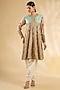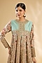 Featuring a pista kurta in silk and organza base with floral print, hand and machine embroidery. It is paired with pants. Accentuate it with statement jhumkas and embellished juttis for a stylish ensemble, ideal for festive gatherings, pre-wedding functions, or family celebrations.