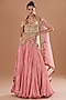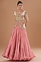 Featuring an ivory jacket in chanderi base with patchwork. It is paired with a powder pink crushed skirt and a patchwork dupatta. Accentuate with statement earrings and heels for a bridesmaid look. Perfect wear for a wedding or engagement ceremony.