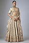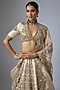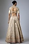 Featuring a powder pink lehenga in silk base with paisley print, mukaish hand and machine embroidery. It is paired with a blouse and a dupatta. Accentuate the designer lehenga with silver jewellery, a clutch and embellished heels for a wedding, sangeet or engagement ceremony.