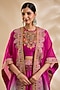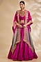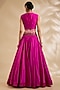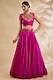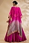Featuring a ran pink cape in chanderi and organza base with hand and machine embroidery. It is paired with an embroidered blouse and a skirt. Accentuate it with kundan polki jewellery and block heels for a wedding or sangeet ceremony.