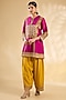 Featuring a rani pink kurta in silk base with abstract print, hand and machine embroidery. It is paired with pants. Accentuate it with jhumkas and a sleek clutch for a stylish ensemble, ideal for casual outings, brunches or daytime events.