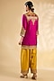 Rani Pink Silk Abstract Printed & Hand Embroidered Kurta Set