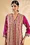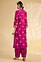 Featuring a rani pink kurta in silk base with floral print, hand and machine embroidery. It is paired with pants. Accentuate it with jhumkas and a sleek clutch for a stylish ensemble, ideal for a festive occasion, pooja or any pre-wedding ceremony.
