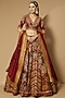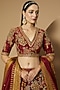 Featuring a red lehenga in chanderi and habutai silk base with embroidery. It is paired with a matching blouse and a dupatta.