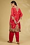 Featuring a red kurta in silk base with hand and machine embroidery. It is paired with salwar pants and a dupatta. Style it with a clutch and heels for festive nights, sangeet or wedding functions.