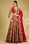 Featuring a red lehenga in silk base with hand and machine embroidery. It is paired with a blouse and a dupatta. Style it with a clutch and heels for festive nights, sangeet or wedding functions.