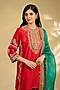 Red Silk Hand & Machine Embroidered Kurta Set