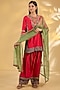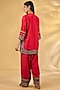 Featuring a red kurta in silk base with hand and machine embroidery. It is paired with salwar pants and a dupatta. Accentuate it with statement jewellery and heels for festive occasions or sangeet ceremony.