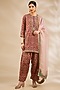 Featuring a red kurta in silk base with hand and machine embroidery. It is paired with pants and a blush pink dupatta. Accentuate it with polki jewellery, a clutch, and wedges for a festive look or a wedding ceremony.