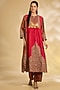 Red Silk Hand & Machine Embroidered Kurta Set