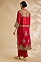 Red Silk Hand & Machine Embroidered Kurta Set