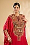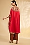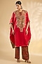 Featuring a red kaftan in silk base with hand and machine embroidery. It is paired with pants. Style this with statement earrings and heels for a festive occasion, family gathering, wedding or engagement ceremony.