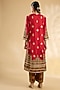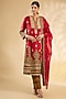 Featuring a red kurta in silk base with hand and machine embroidery. It is paired with pants and a dupatta. Style this with statement earrings and heels for a festive occasion, wedding or engagement ceremony.