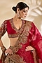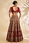 Featuring a red lehenga in silk base with hand and machine embroidery. It is paired with a blouse and a dupatta. Accentuate it with kundan polki jewellery, a sleek bun and wedges for weddings or a bridal look.