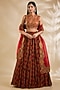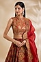 Featuring a red blouse in silk and organza base with hand and machine embroidery. It is paired with a skirt and a dupatta. Accentuate it with kundan polki jewellery and block heels for a wedding or sangeet ceremony.