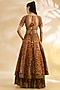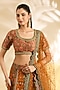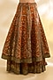 Featuring a rust and olive lehenga in silk and chanderi base with floral print, hand and machine embroidery. It is paired with a blouse and dupatta. Accentuate the look with statement jewellery, clutch and block heels for festive celebrations, mehendi, haldi or wedding ceremonies.