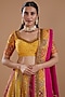 Featuring a yellow lehenga in chanderi base with pitta mukaish embroidery. It is paired with a matching embroidered blouse and an embroidered dupatta.