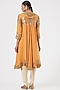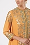 Featuring a yellow trail jacket in georgette and modal satin base with sequins embroidery. It is paired with contrasting pants.