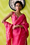 Fuchsia Pink Crepe Silk & Organza Floral Printed Half-N-Half Saree Set