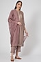 Featuring a mauve kurta in maheshwari silk base with hand embroidery and print. It is paired with matching straight pants, an inner, and a chanderi dupatta.