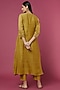 Featuring a molten gold yellow gathered kurta in chanderi base with aari and zardosi hand embroidery. It is paired with matching straight pants.