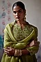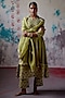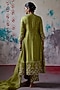 Featuring an olive A-line paneled kurta in silk and organza base with zardosi and moti scallop embroidery. It is paired with straight pants, a slip and a hand embroidered dupatta. Accentuate it with dangler earrings and heels for a festive occasion or wedding ceremony.