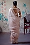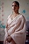 Featuring a soft peach saree in organza and silk base with zari, zardosi and moti embroidery. It is paired with an embroidered blouse. Accentuate it with dangler earrings and heels for a festive occasion or wedding ceremony.