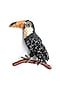 Featuring a black handcrafted toucan brooch with glass bead embroidery, cotton thread, nylon thread, metallic thread and leather backing, set in brass. Pin brooches on jackets, scarves, or bags to add a personalized touch and instantly elevate even the simplest outfit.