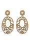 Featuring a pair of gold dangler earrings with glass beads, metallic thread and italian lamb leather backing, set in brass. Perfect choice for festive celebrations, wedding or sangeet ceremonies.