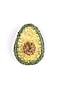 Featuring a green handcrafted avocado brooch with glass beads, nylon thread and suede backing, set in brass. Perfect choice for festive celebrations, wedding or sangeet ceremonies.