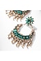 Featuring a pair of green dangler earrings with glass beads, glass crystals, nylon thread and leather backing, set in brass. Perfect choice for festive celebrations, wedding or sangeet ceremonies.