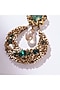 Featuring a green maang tikka with glass beads, glass crystals, nylon thread and leather backing, set in brass. Perfect choice for festive celebrations, wedding or sangeet ceremonies.
