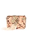 Featuring a peach handcrafted bag with glass beads, nylon thread and suede backing, set in brass. Perfect choice for festive celebrations, wedding or sangeet ceremonies.