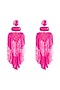 Featuring a pair of pink handcrafted dangler earrings with glass beads, crystal, cotton thread and suede backing, set in brass. Perfect choice for festive celebrations, wedding or sangeet ceremonies.