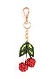 Featuring a red handcrafted cherry bag charm with glass beads, nylon thread and suede backing, set in brass. Perfect choice for festive celebrations, wedding or sangeet ceremonies.