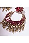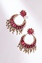Featuring a pair of red dangler earrings with glass beads, glass crystals, nylon thread and leather backing, set in brass. Perfect choice for festive celebrations, wedding or sangeet ceremonies.